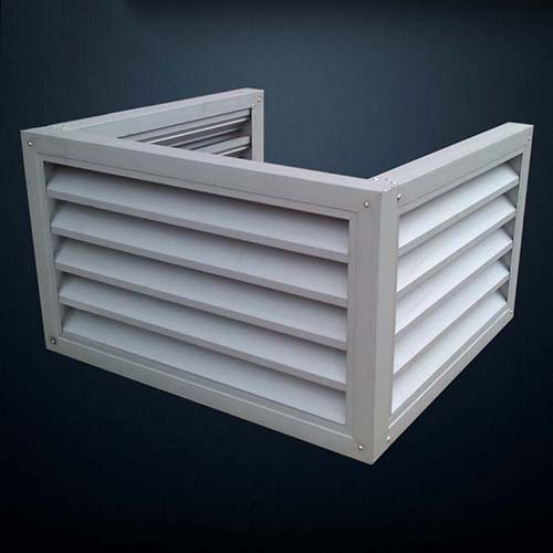 防水百葉,葉片固定式,其葉片傾斜45度設計成特別的形狀,具有防水濺入內部的功能。一般作安裝在外墻上的通風口;外墻空調防水百葉罩,根據(jù)室外空調主機尺寸定做為開口框架形式,框架之間百葉的連接,既使得外墻美觀;廣泛用于美化小區(qū)樓盤,遮掩室外空調主機,美化樓宇建筑的外觀。